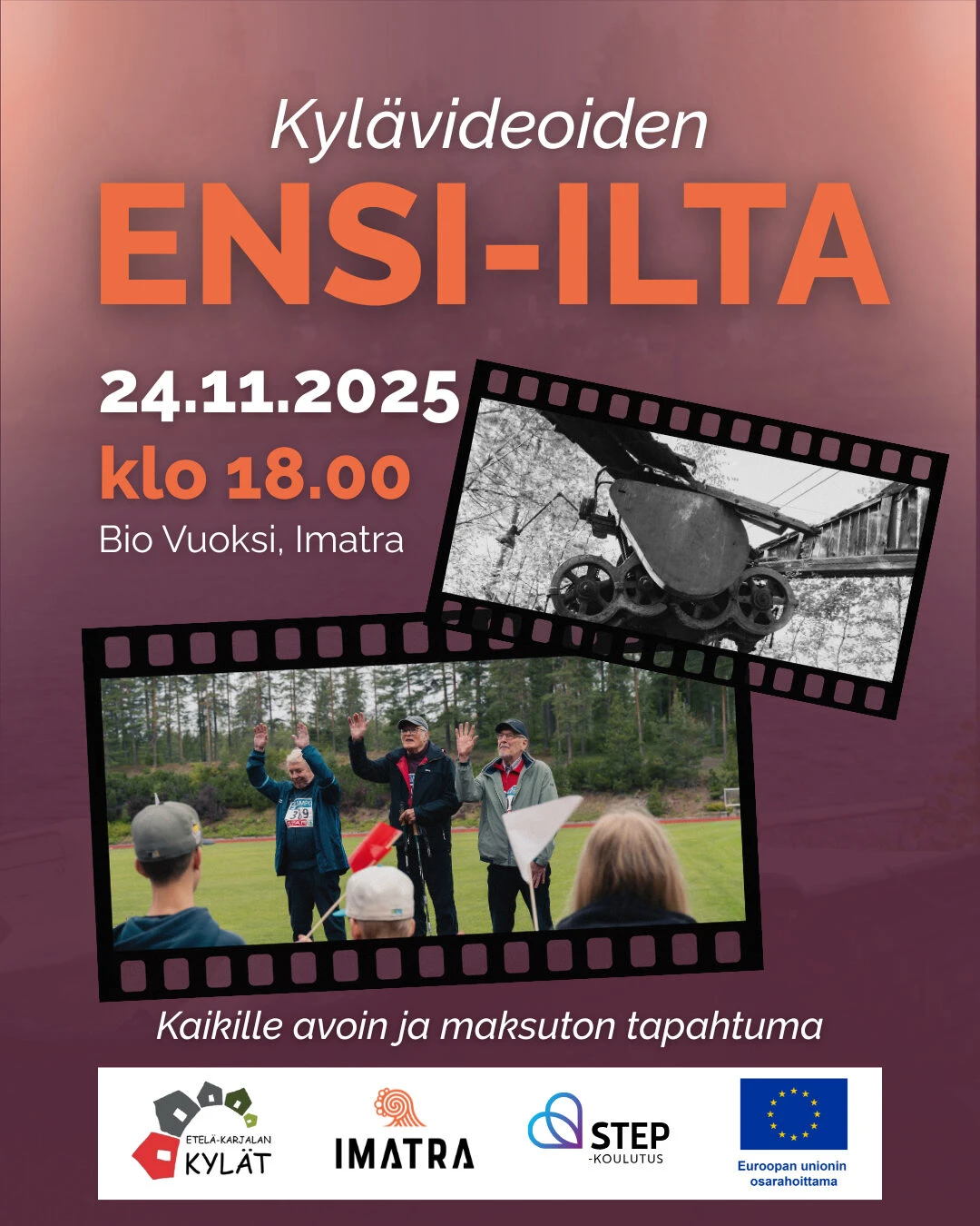 Imatran kylien helmet- kylävideoiden ensi-ilta Bio Vuoksessa 24.11.2025 klo 18.